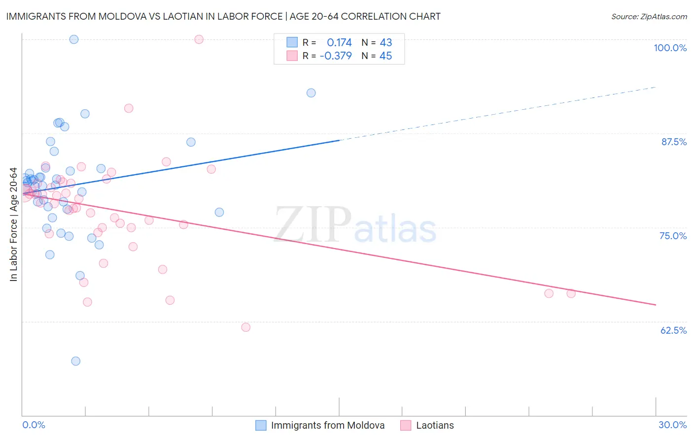 Immigrants from Moldova vs Laotian In Labor Force | Age 20-64 Correlation Chart