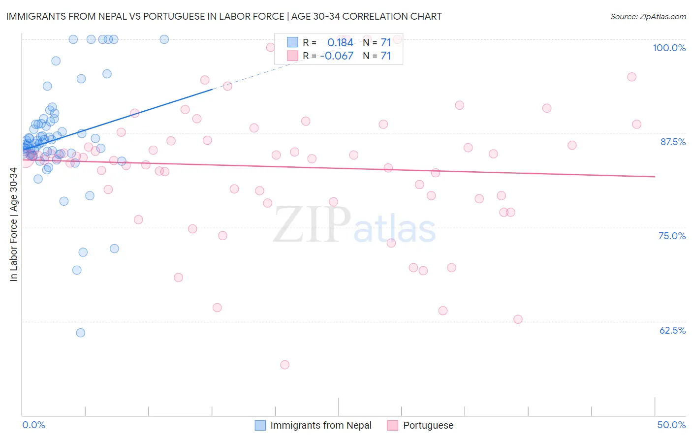 Immigrants from Nepal vs Portuguese In Labor Force | Age 30-34 Correlation Chart