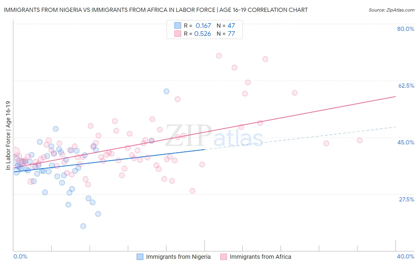 Immigrants from Nigeria vs Immigrants from Africa In Labor Force | Age 16-19 Correlation Chart
