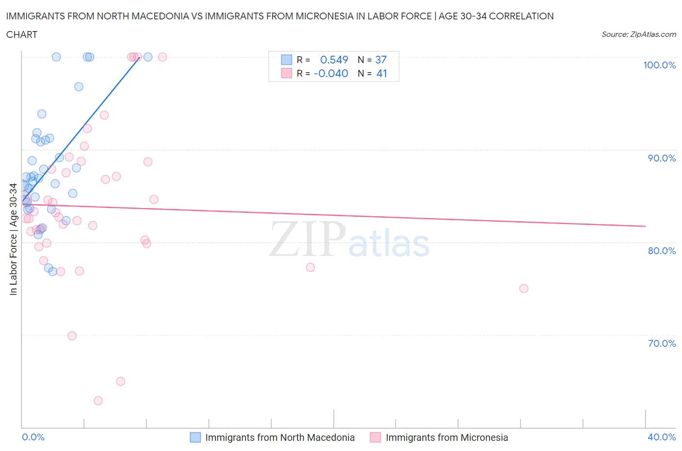 Immigrants from North Macedonia vs Immigrants from Micronesia In Labor Force | Age 30-34 Correlation Chart