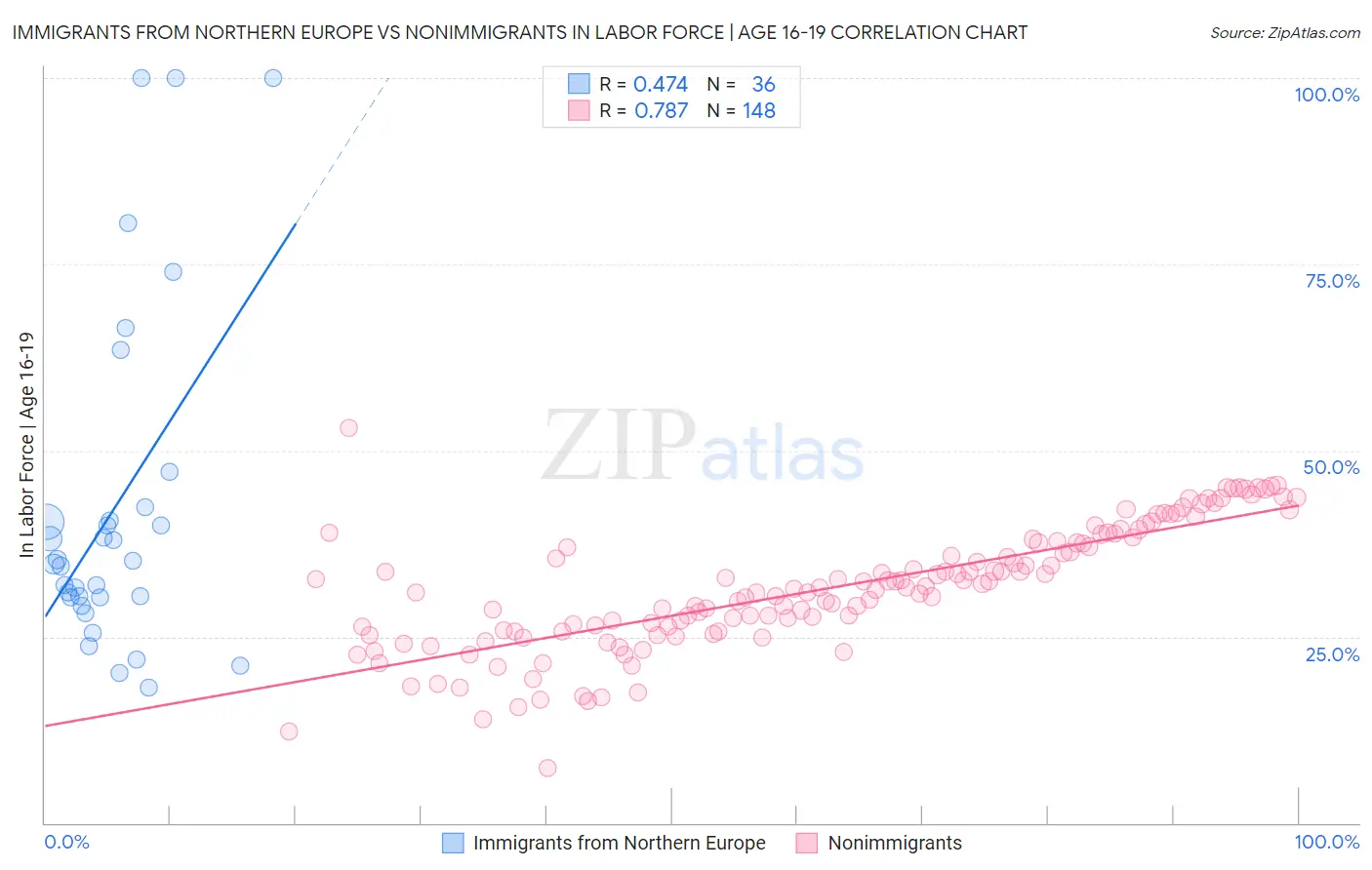 Demographics Similar to Immigrants from Northern Europe by In Labor Force | Age 16-19
