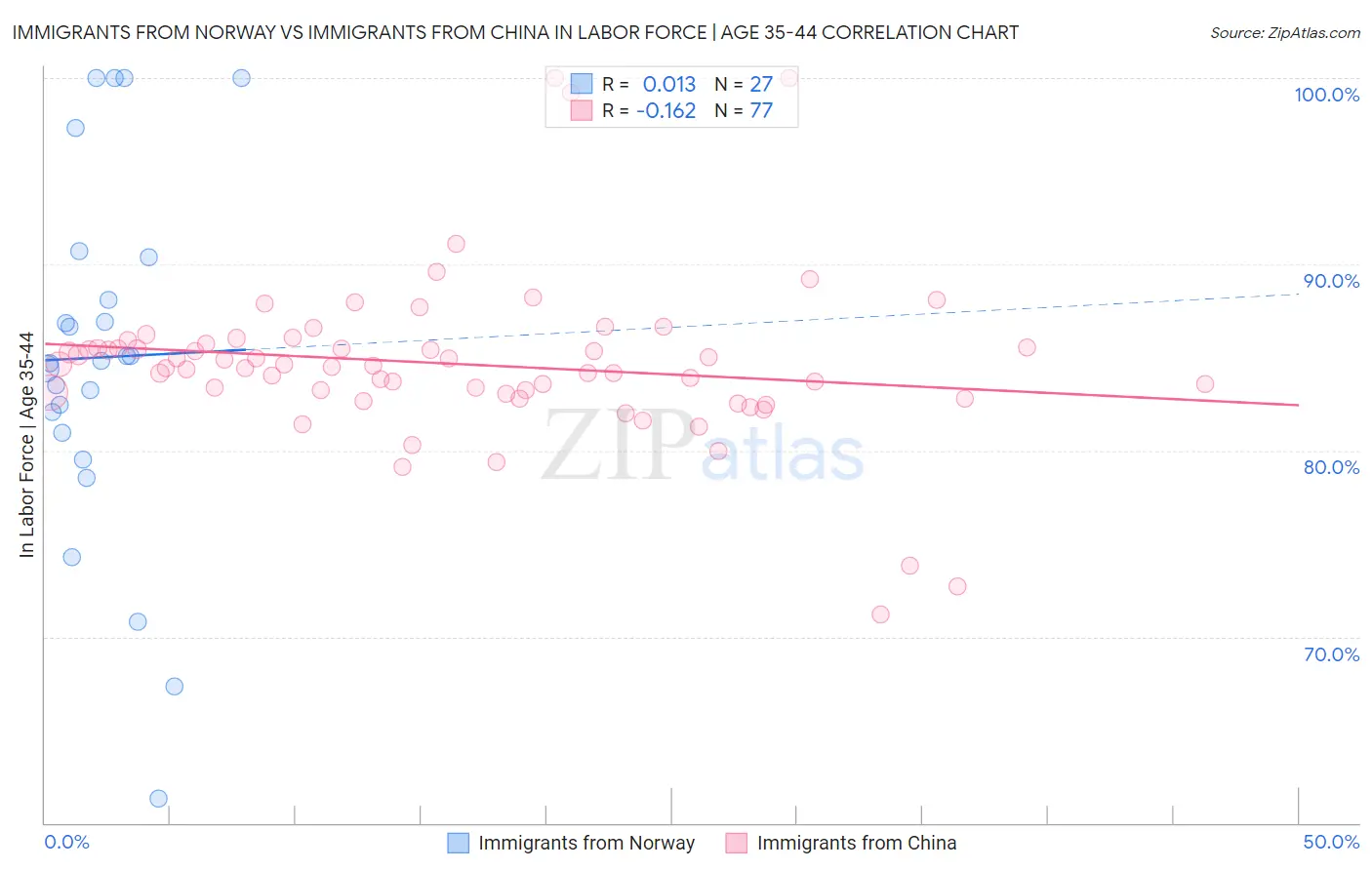 Immigrants from Norway vs Immigrants from China In Labor Force | Age 35-44 Correlation Chart