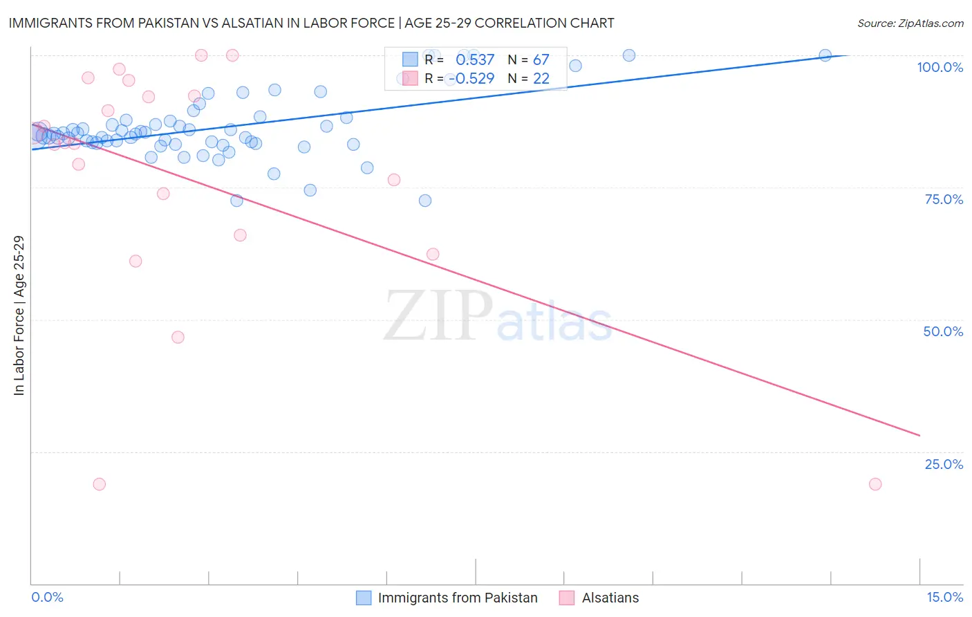 Immigrants from Pakistan vs Alsatian In Labor Force | Age 25-29 Correlation Chart