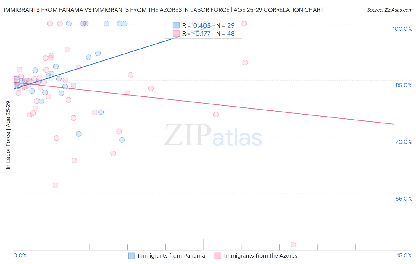 Immigrants from Panama vs Immigrants from the Azores In Labor Force | Age 25-29 Correlation Chart