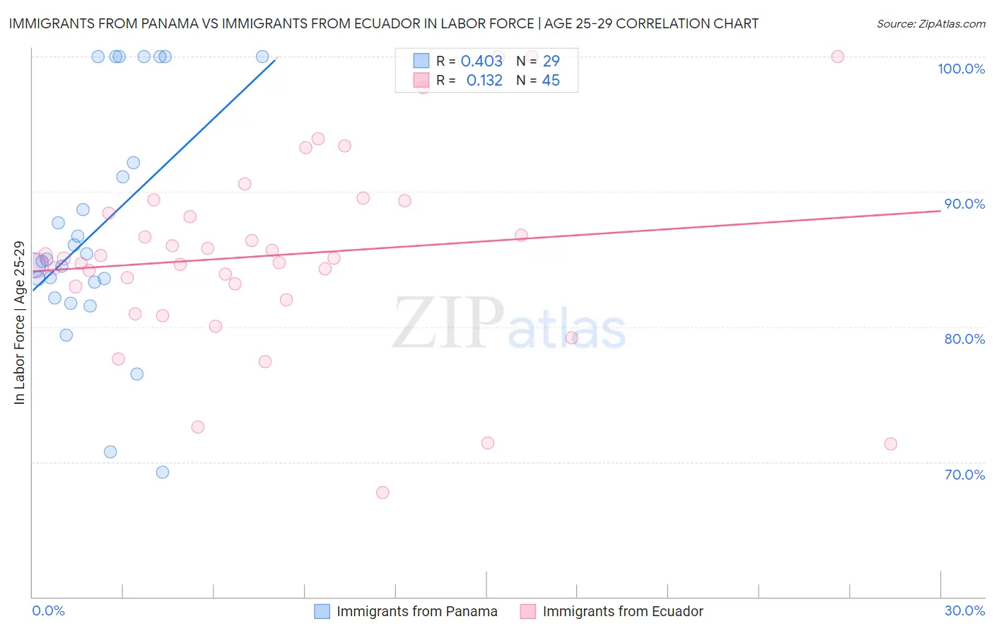 Immigrants from Panama vs Immigrants from Ecuador In Labor Force | Age 25-29 Correlation Chart