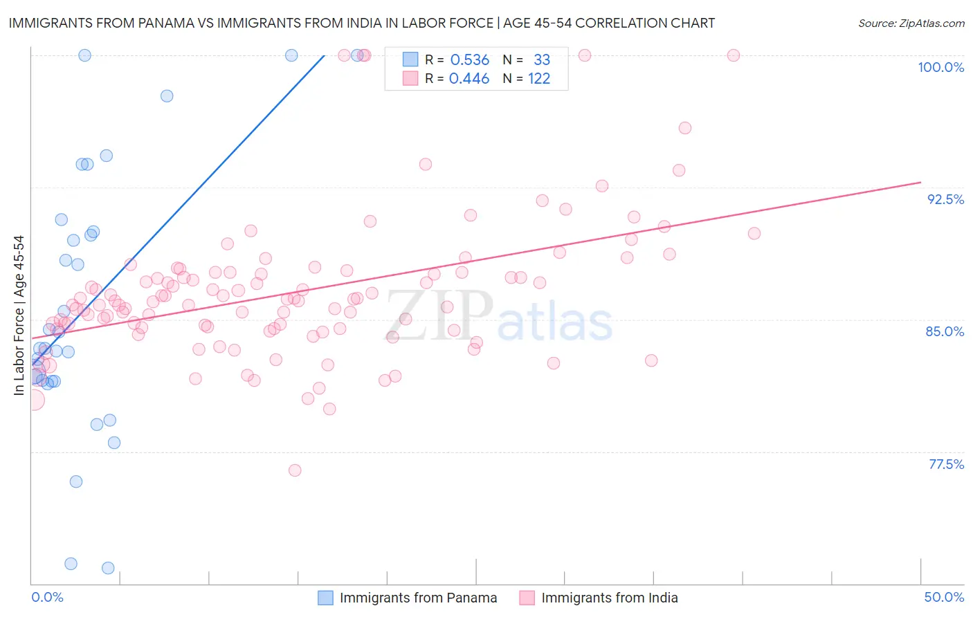 Immigrants from Panama vs Immigrants from India In Labor Force | Age 45-54 Correlation Chart