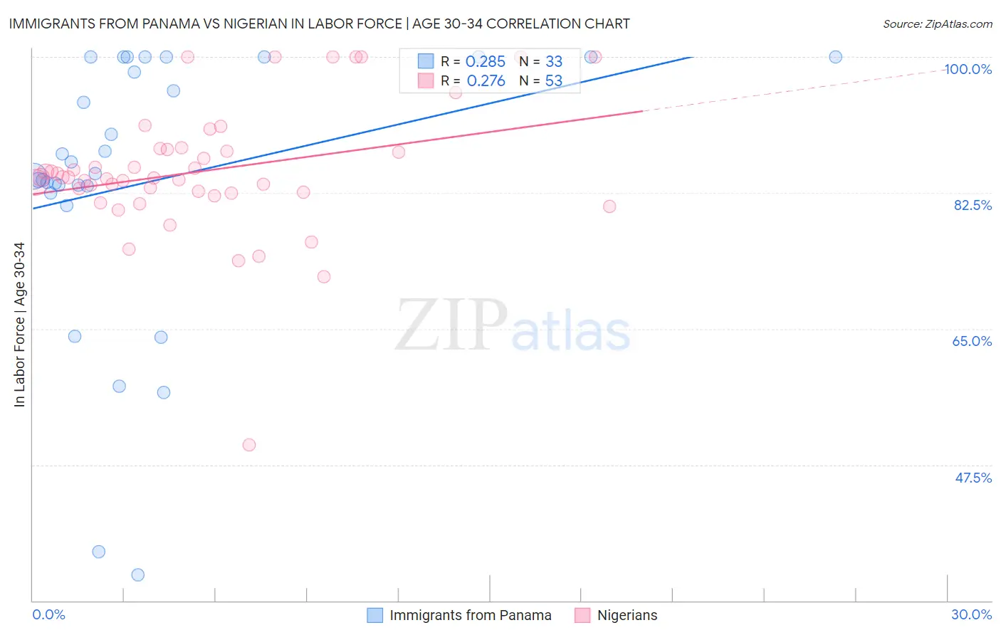 Immigrants from Panama vs Nigerian In Labor Force | Age 30-34 Correlation Chart