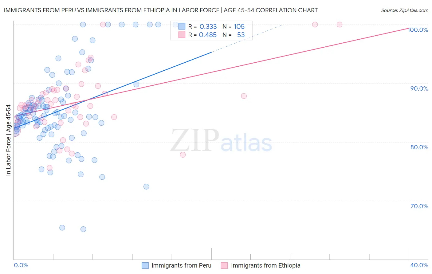 Immigrants from Peru vs Immigrants from Ethiopia In Labor Force | Age 45-54 Correlation Chart