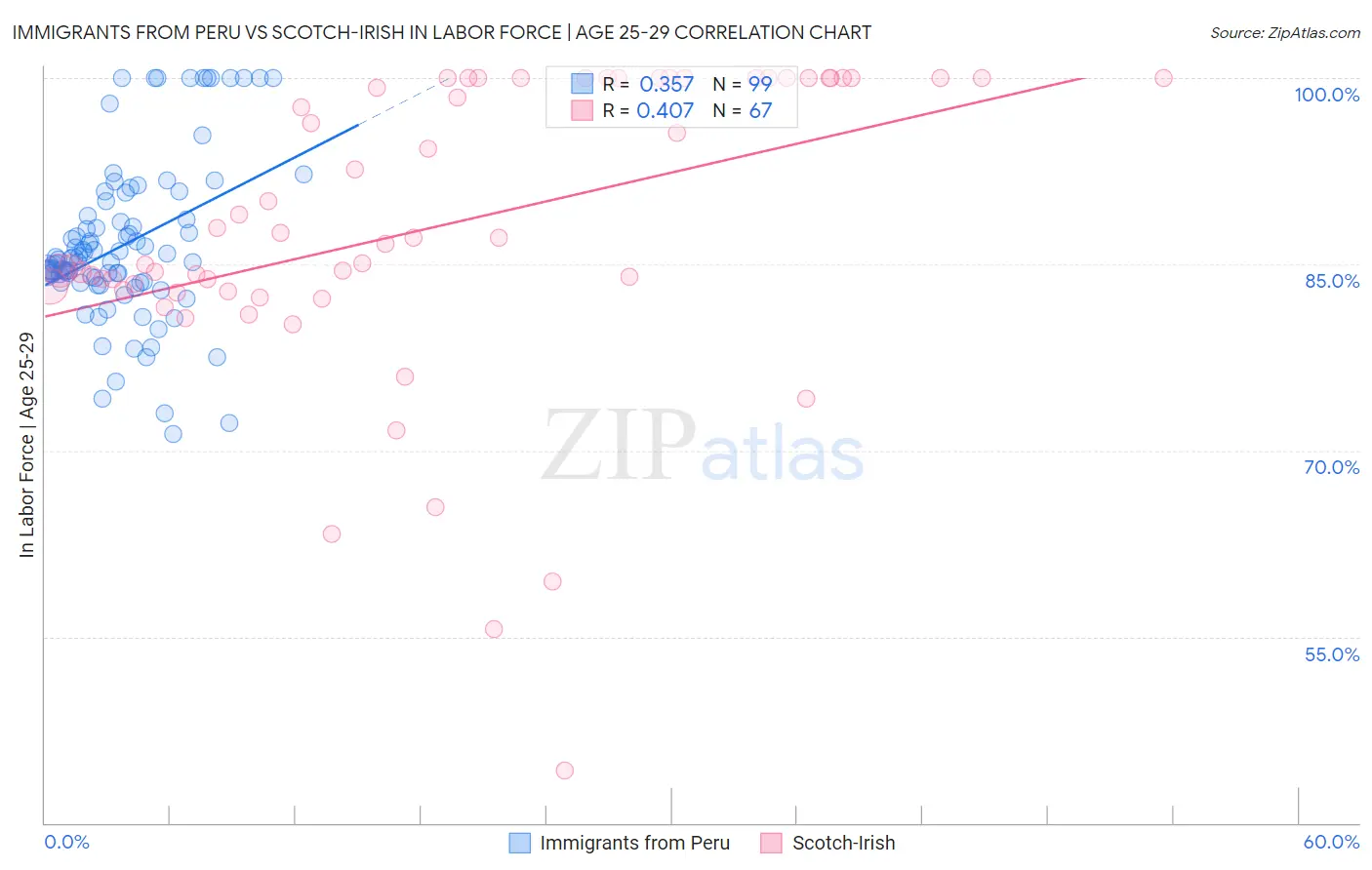 Immigrants from Peru vs Scotch-Irish In Labor Force | Age 25-29 Correlation Chart