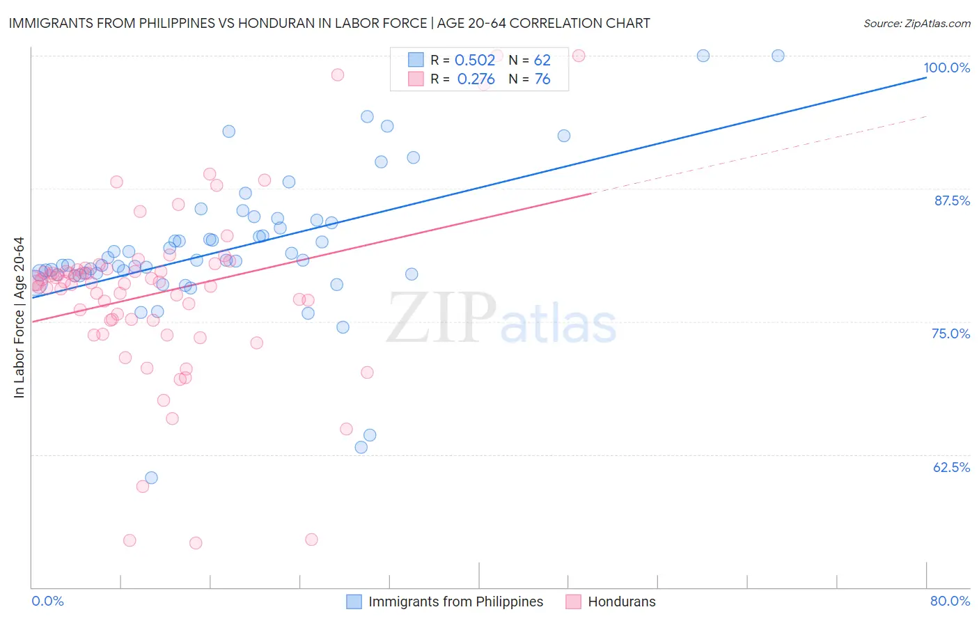 Immigrants from Philippines vs Honduran In Labor Force | Age 20-64 Correlation Chart