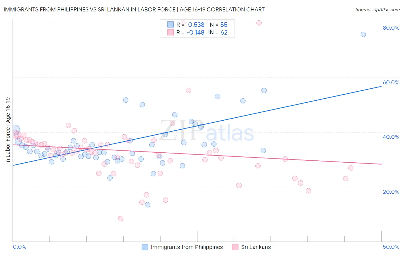 Immigrants from Philippines vs Sri Lankan In Labor Force | Age 16-19 Correlation Chart