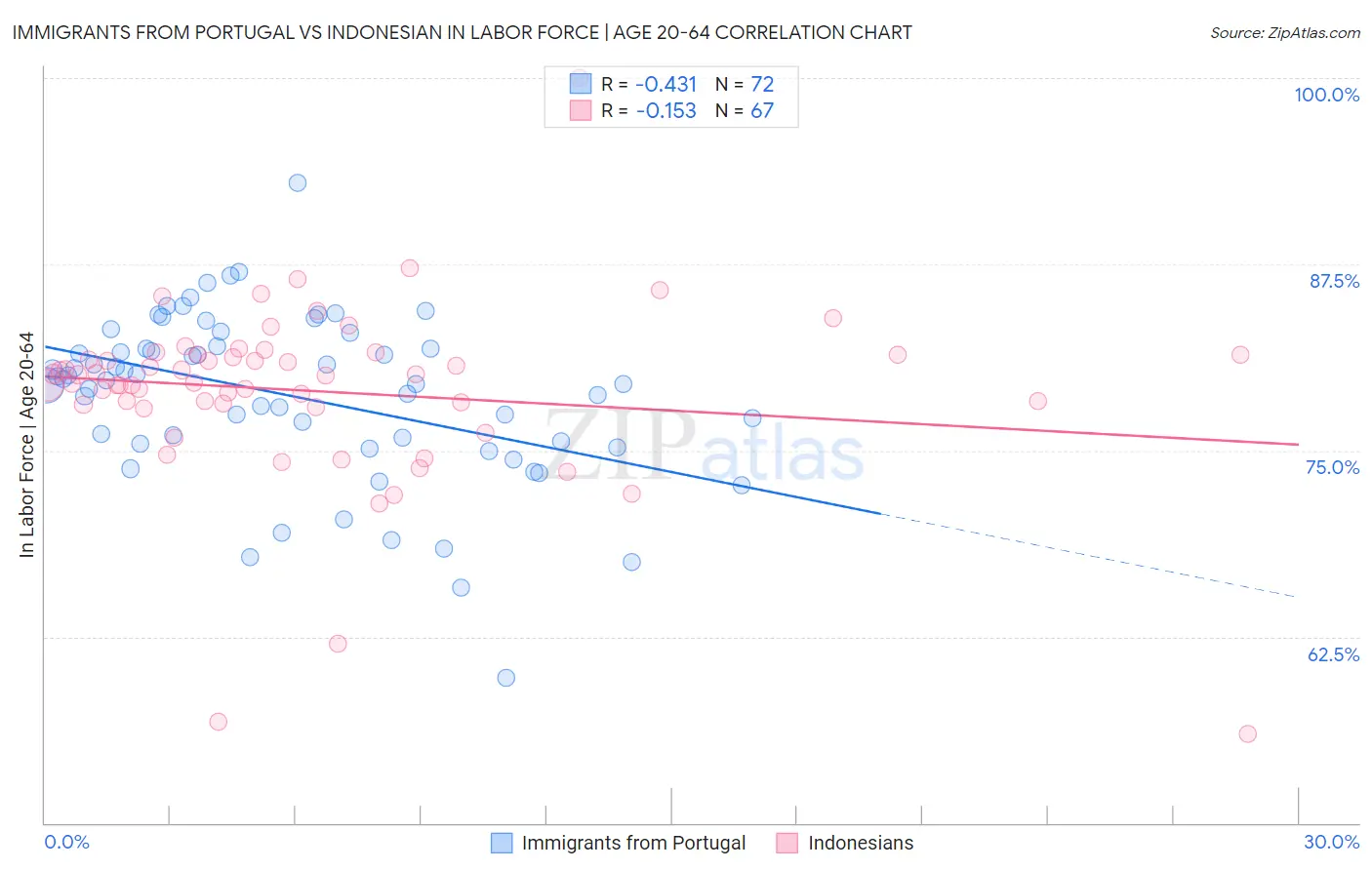 Immigrants from Portugal vs Indonesian In Labor Force | Age 20-64 Correlation Chart