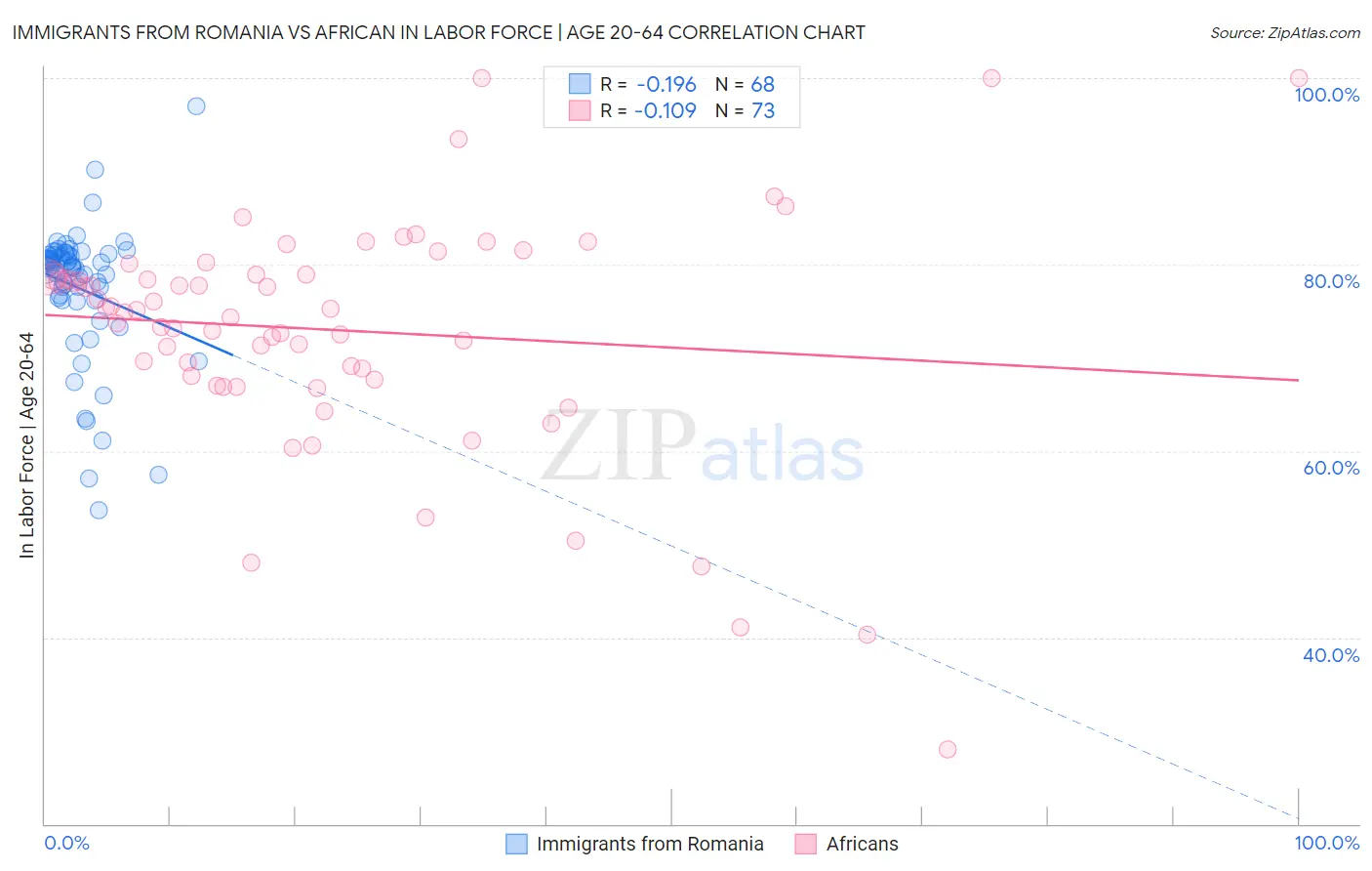 Immigrants from Romania vs African In Labor Force | Age 20-64 Correlation Chart