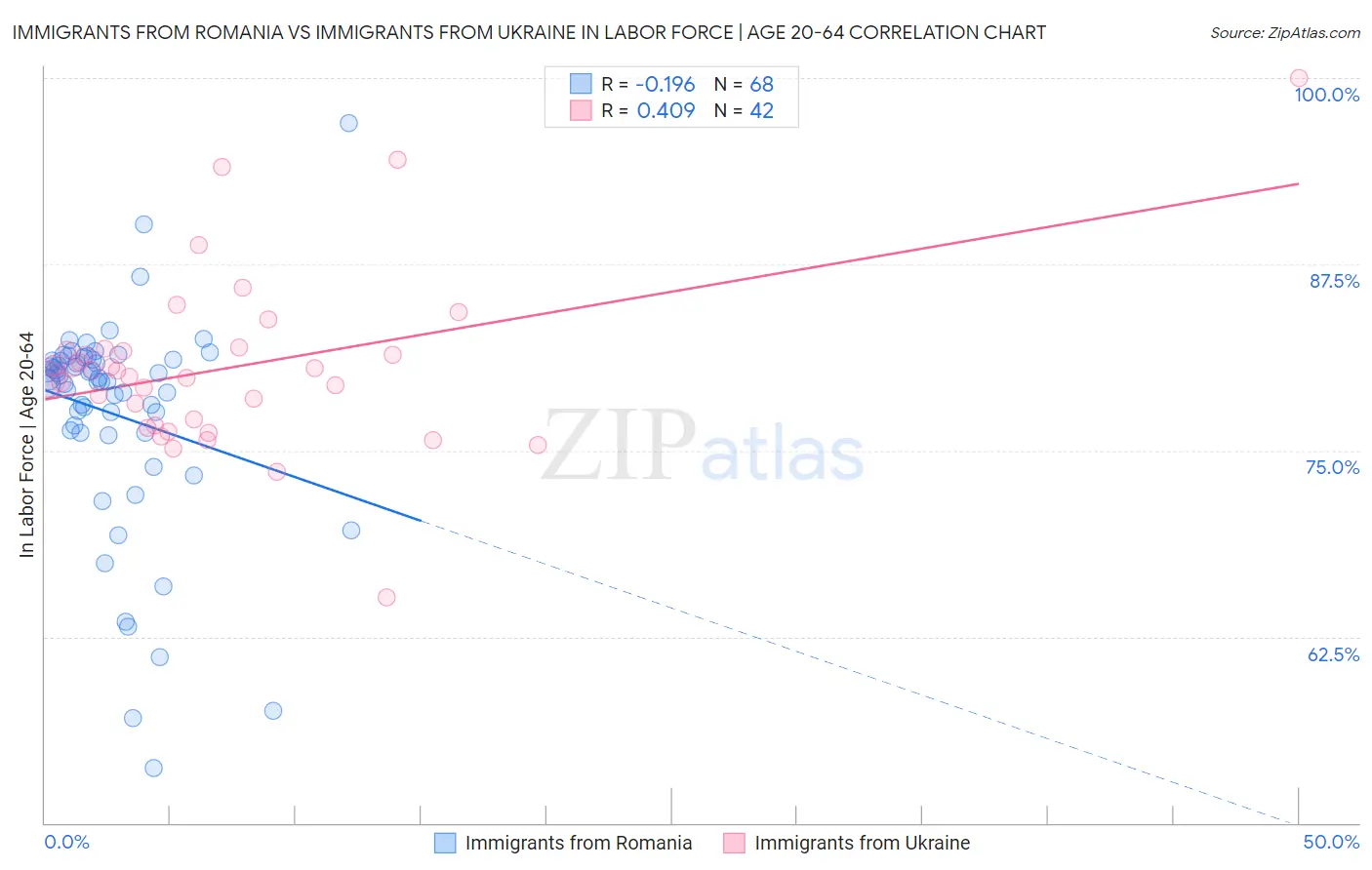 Immigrants from Romania vs Immigrants from Ukraine In Labor Force | Age 20-64 Correlation Chart