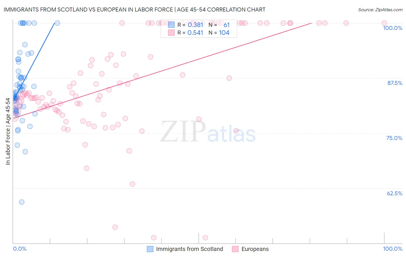Immigrants from Scotland vs European In Labor Force | Age 45-54 Correlation Chart