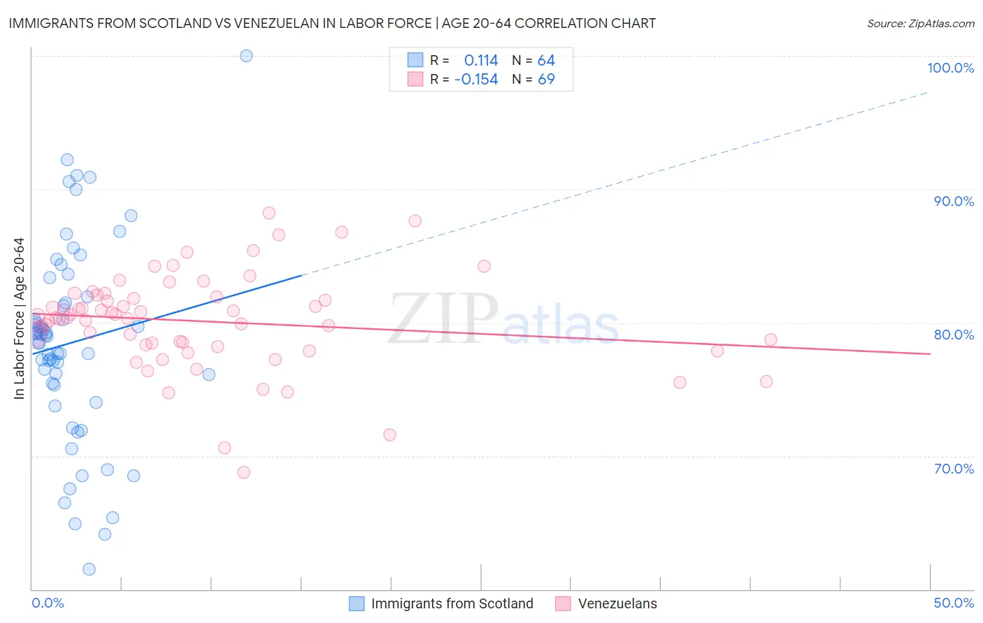 Immigrants from Scotland vs Venezuelan In Labor Force | Age 20-64 Correlation Chart