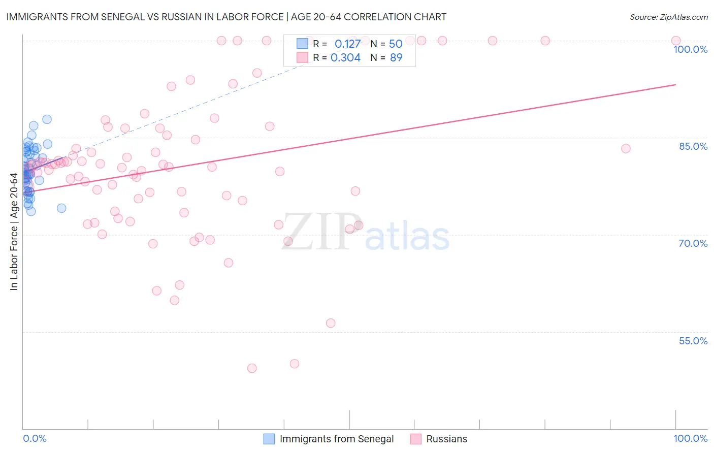 Immigrants from Senegal vs Russian In Labor Force | Age 20-64 Correlation Chart