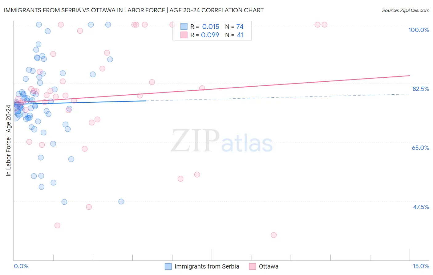 Immigrants from Serbia vs Ottawa In Labor Force | Age 20-24 Correlation Chart