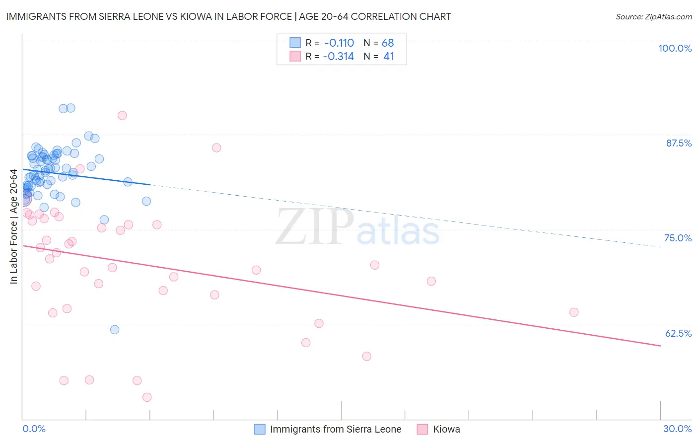 Immigrants from Sierra Leone vs Kiowa In Labor Force | Age 20-64 Correlation Chart