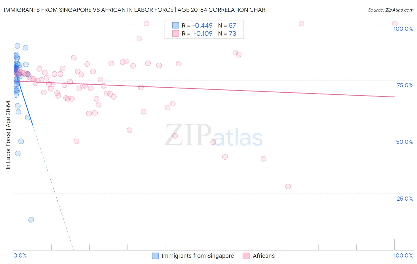 Immigrants from Singapore vs African In Labor Force | Age 20-64 Correlation Chart