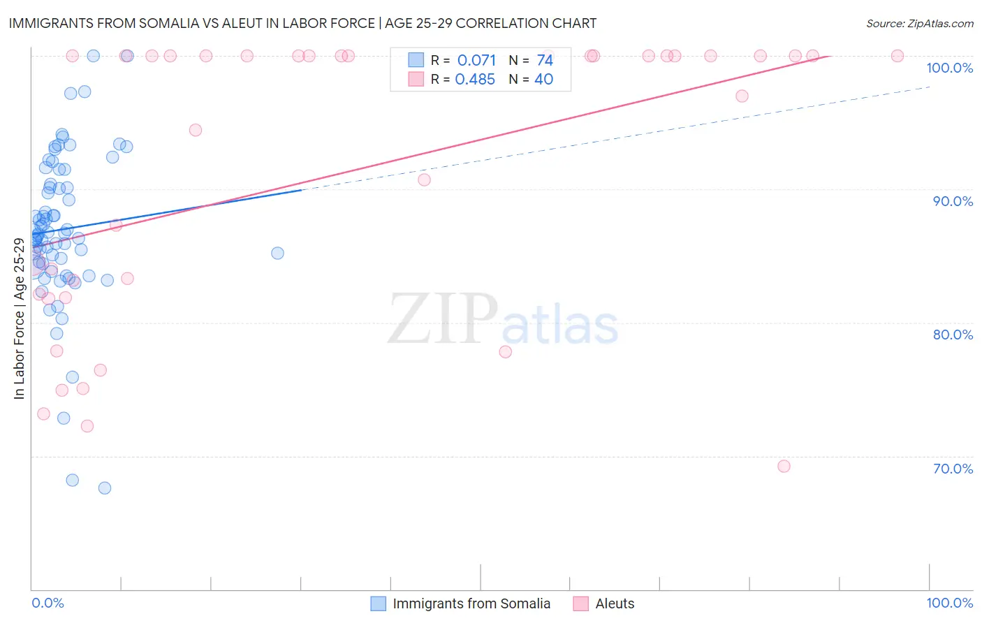 Immigrants from Somalia vs Aleut In Labor Force | Age 25-29 Correlation Chart