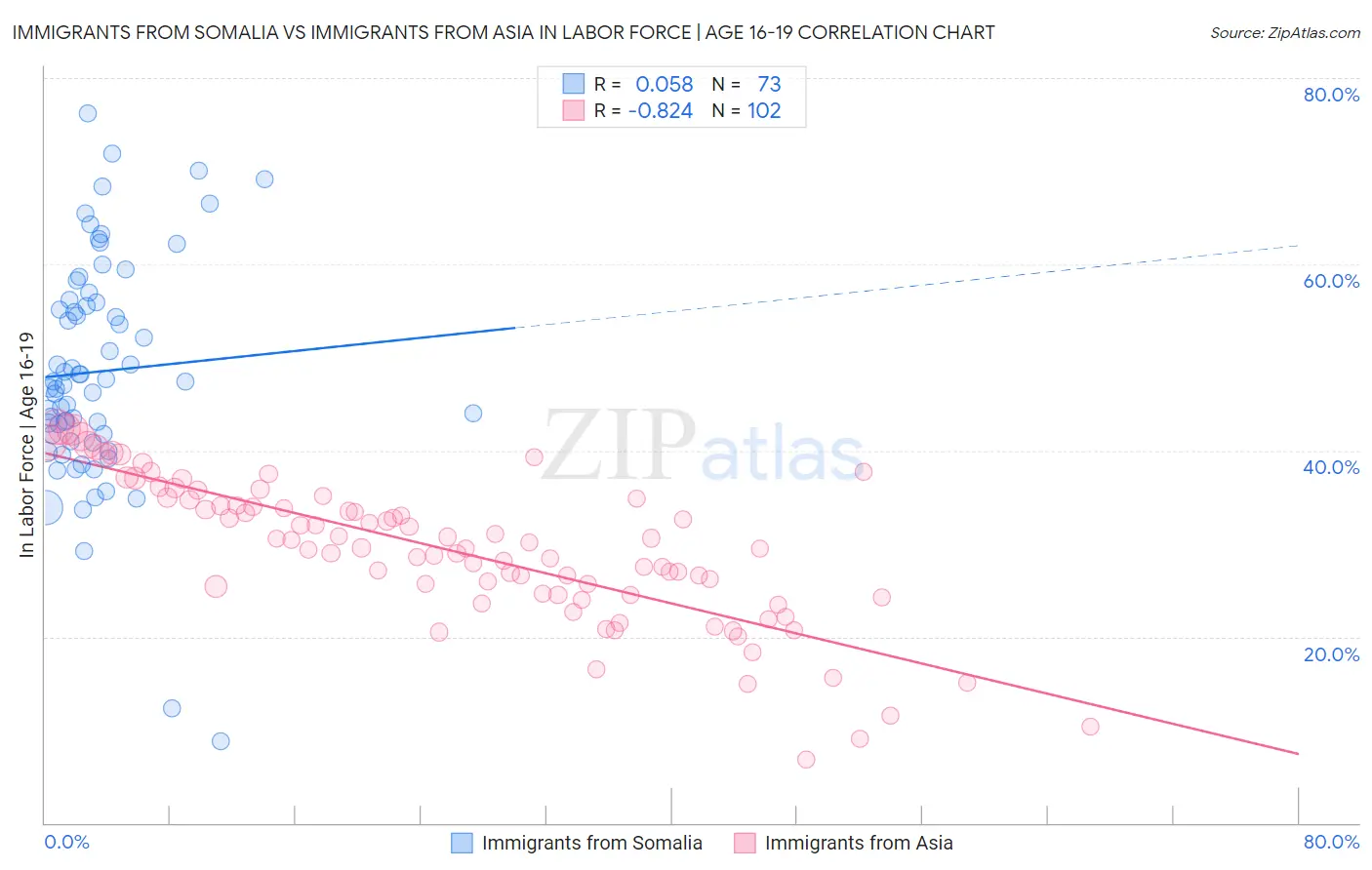 Immigrants from Somalia vs Immigrants from Asia In Labor Force | Age 16-19 Correlation Chart