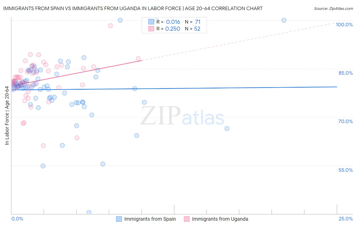 Immigrants from Spain vs Immigrants from Uganda In Labor Force | Age 20-64 Correlation Chart
