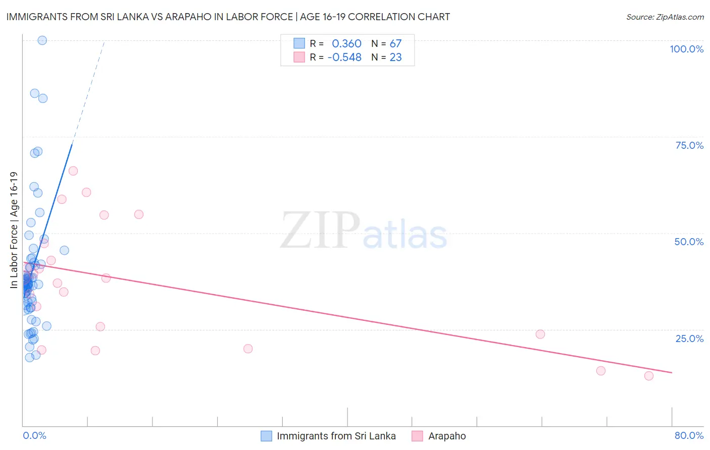Immigrants from Sri Lanka vs Arapaho In Labor Force | Age 16-19 Correlation Chart