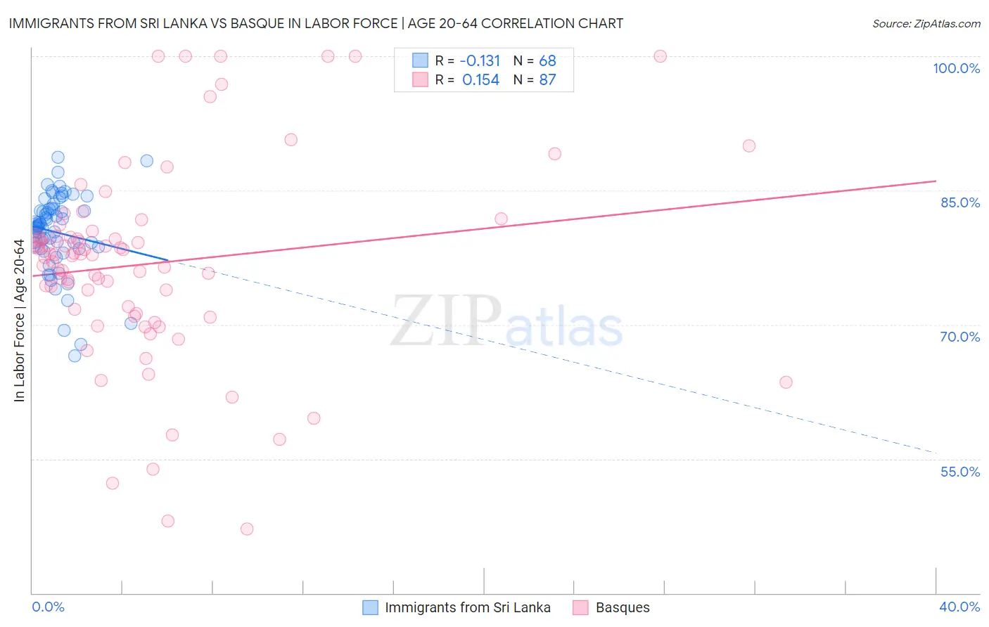 Immigrants from Sri Lanka vs Basque In Labor Force | Age 20-64 Correlation Chart