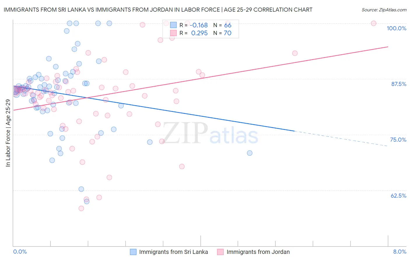 Immigrants from Sri Lanka vs Immigrants from Jordan In Labor Force | Age 25-29 Correlation Chart