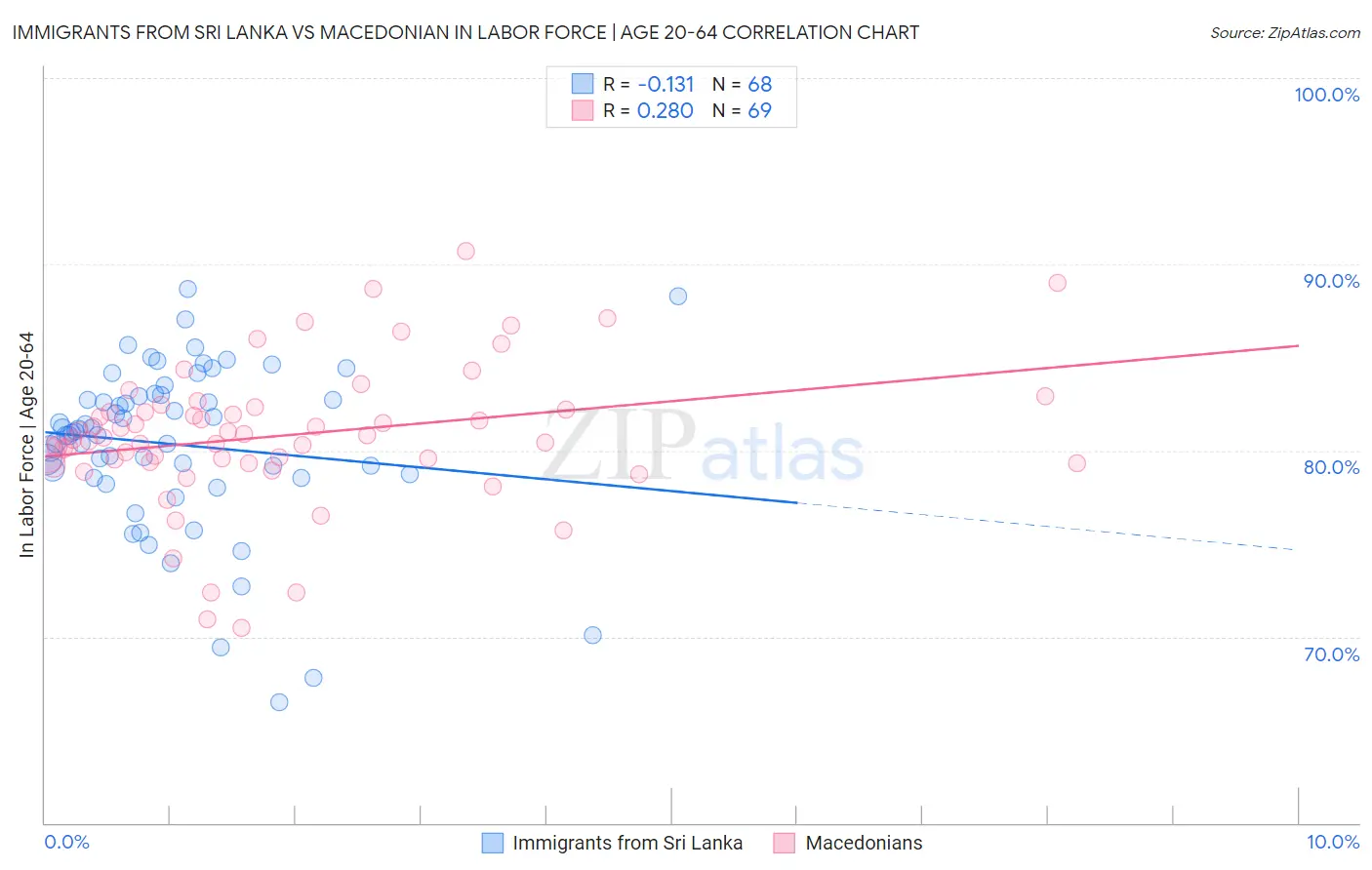 Immigrants from Sri Lanka vs Macedonian In Labor Force | Age 20-64 Correlation Chart