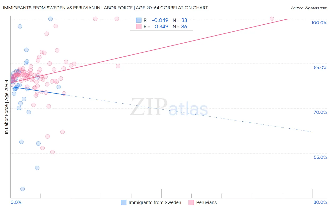 Immigrants from Sweden vs Peruvian In Labor Force | Age 20-64 Correlation Chart