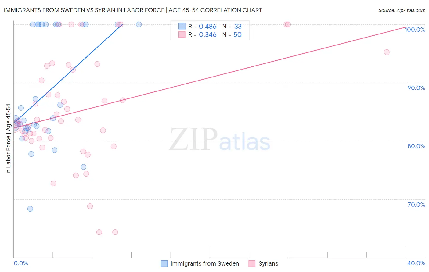 Immigrants from Sweden vs Syrian In Labor Force | Age 45-54 Correlation Chart