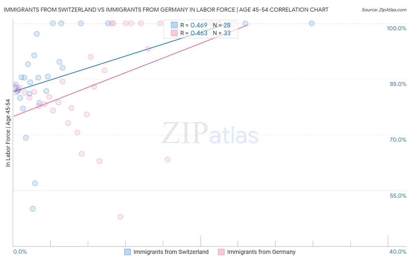 Immigrants from Switzerland vs Immigrants from Germany In Labor Force | Age 45-54 Correlation Chart