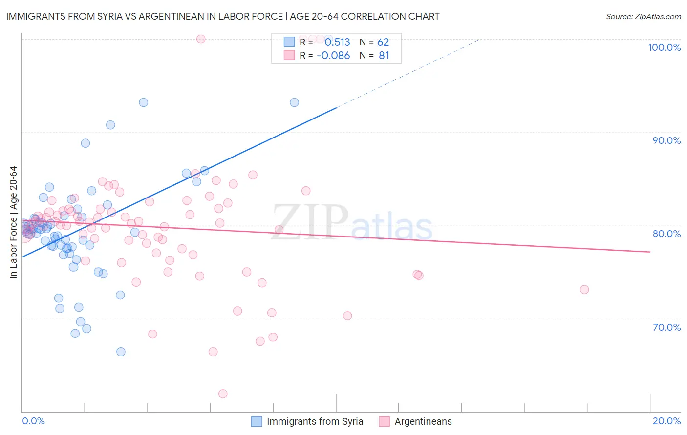 Immigrants from Syria vs Argentinean In Labor Force | Age 20-64 Correlation Chart