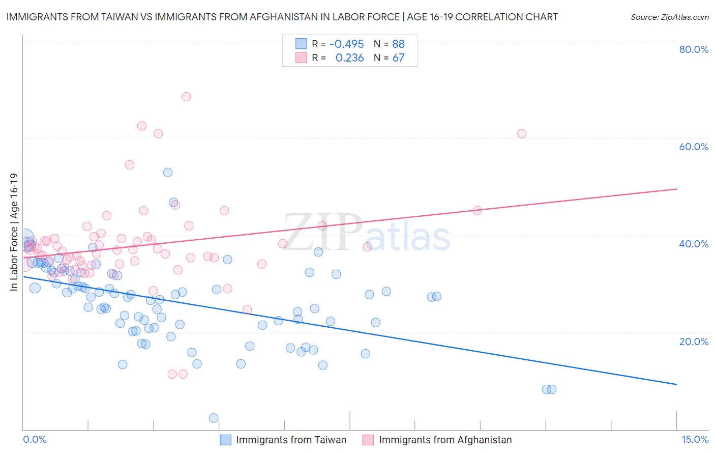 Immigrants from Taiwan vs Immigrants from Afghanistan In Labor Force | Age 16-19 Correlation Chart