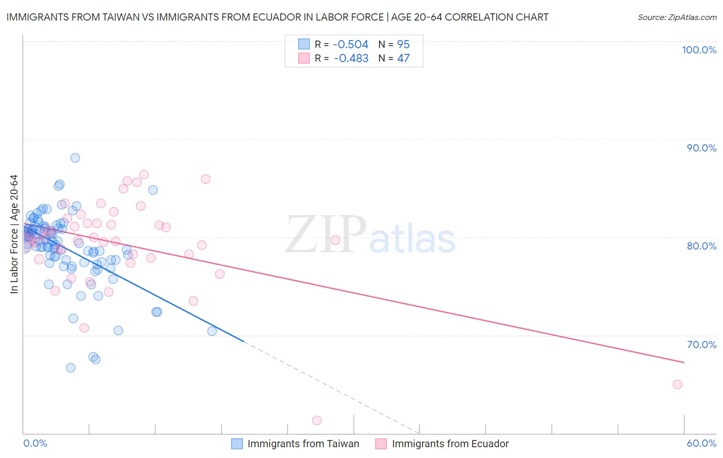 Immigrants from Taiwan vs Immigrants from Ecuador In Labor Force | Age 20-64 Correlation Chart