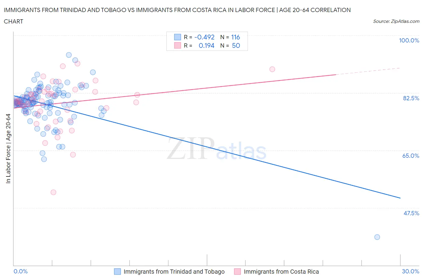 Immigrants from Trinidad and Tobago vs Immigrants from Costa Rica In Labor Force | Age 20-64 Correlation Chart