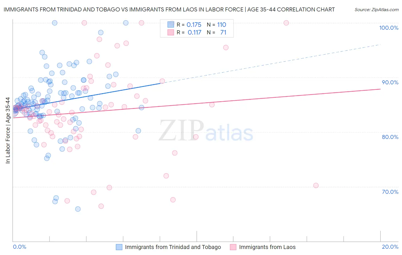 Immigrants from Trinidad and Tobago vs Immigrants from Laos In Labor Force | Age 35-44 Correlation Chart