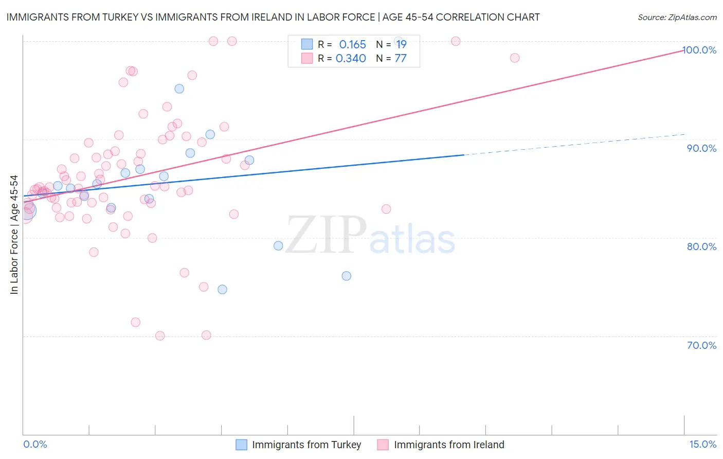 Immigrants from Turkey vs Immigrants from Ireland In Labor Force | Age 45-54 Correlation Chart