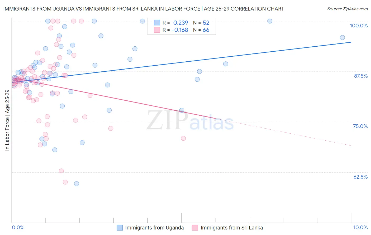 Immigrants from Uganda vs Immigrants from Sri Lanka In Labor Force | Age 25-29 Correlation Chart