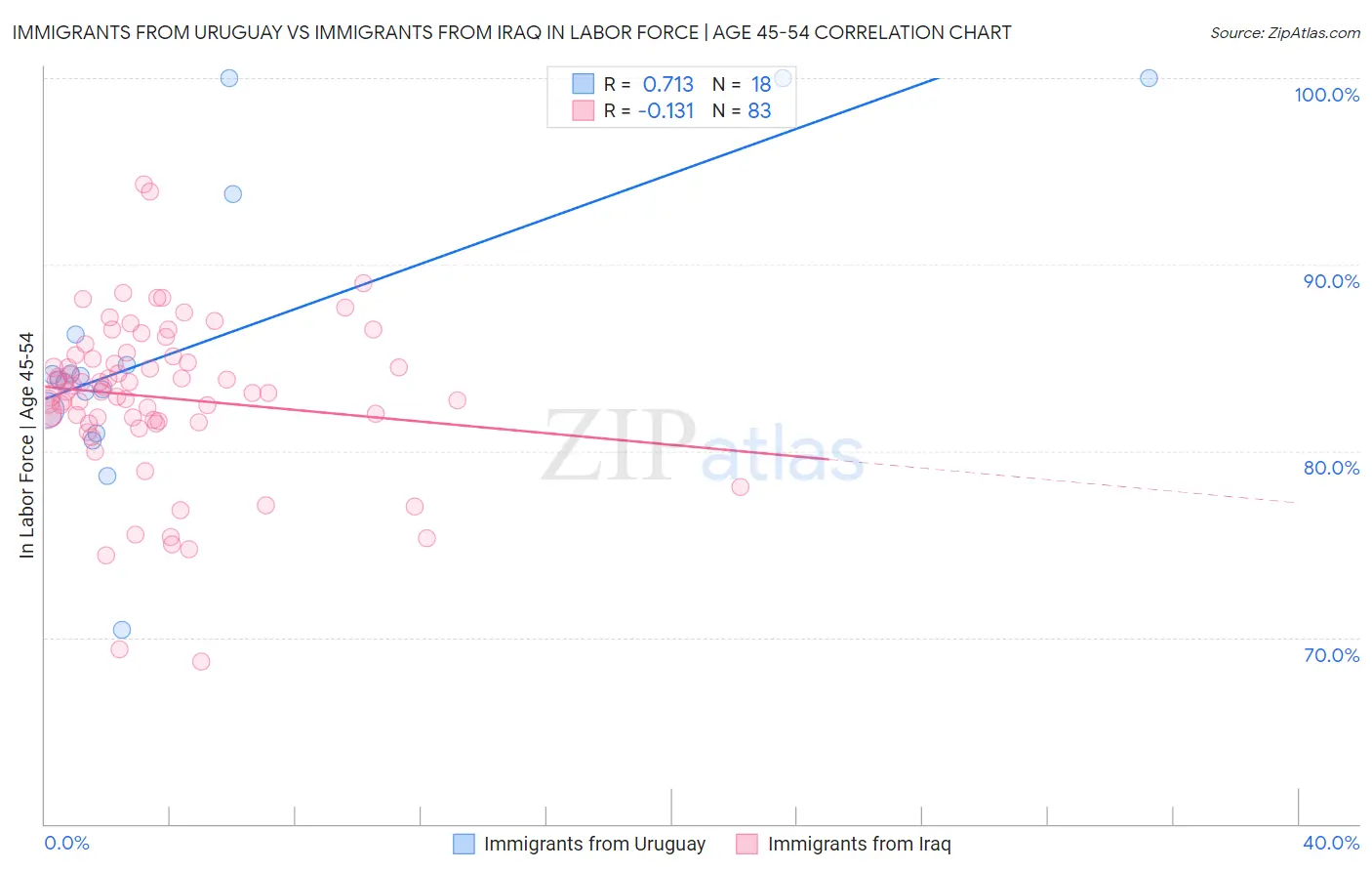 Immigrants from Uruguay vs Immigrants from Iraq In Labor Force | Age 45-54 Correlation Chart