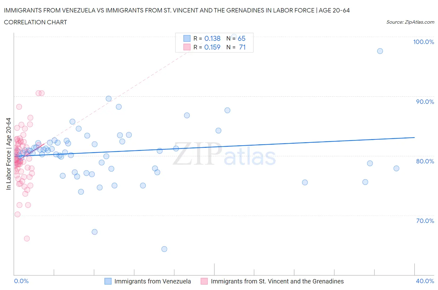 Immigrants from Venezuela vs Immigrants from St. Vincent and the Grenadines In Labor Force | Age 20-64 Correlation Chart