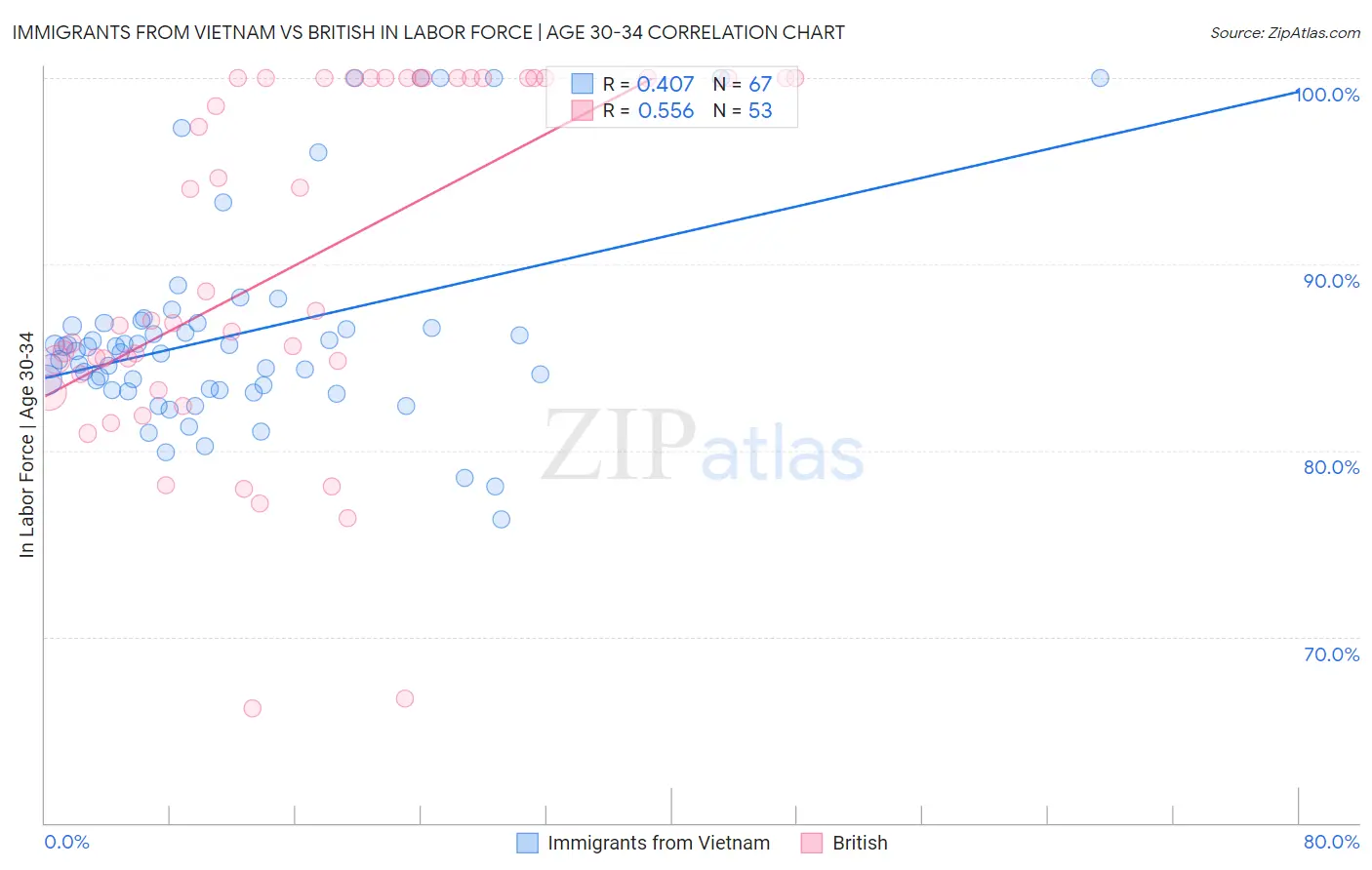 Immigrants from Vietnam vs British In Labor Force | Age 30-34 Correlation Chart