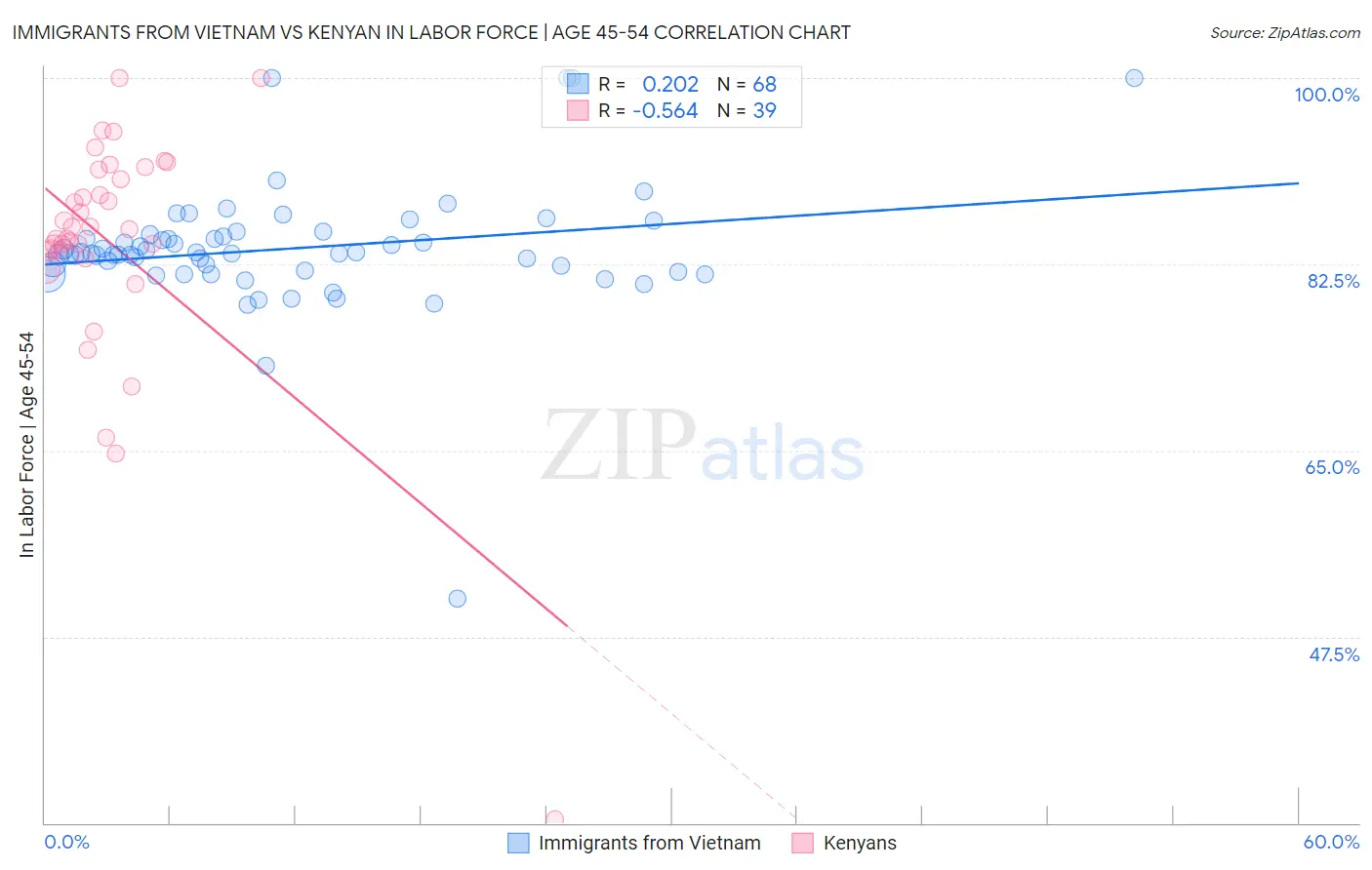 Immigrants from Vietnam vs Kenyan In Labor Force | Age 45-54 Correlation Chart