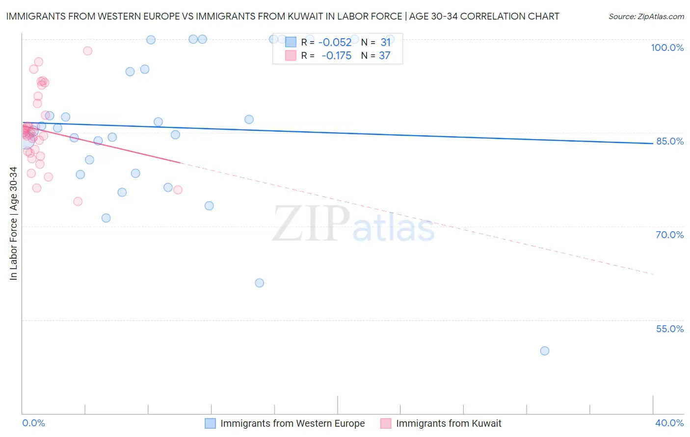 Immigrants from Western Europe vs Immigrants from Kuwait In Labor Force | Age 30-34 Correlation Chart