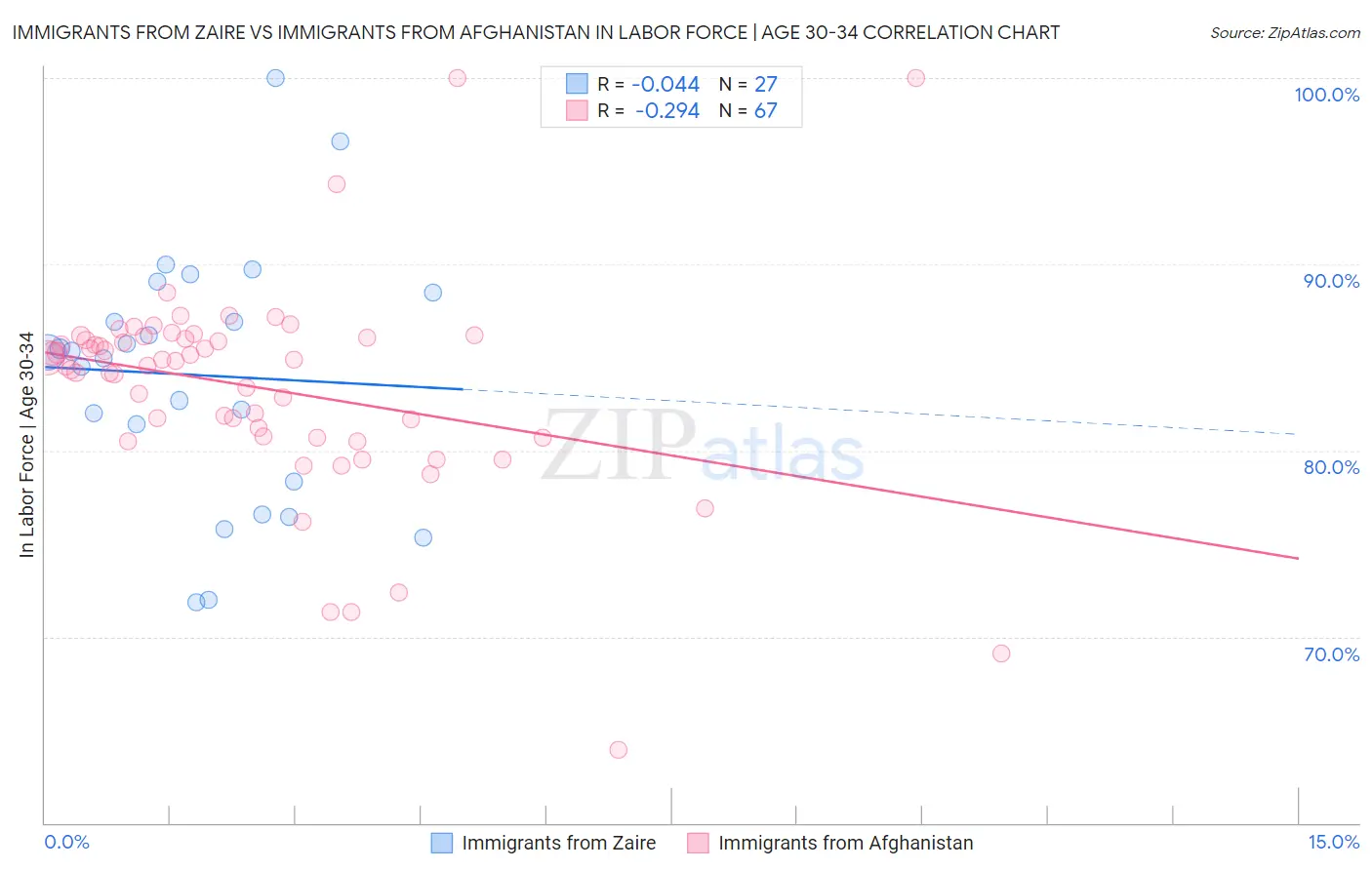 Immigrants from Zaire vs Immigrants from Afghanistan In Labor Force | Age 30-34 Correlation Chart