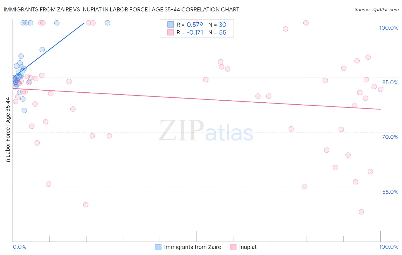 Immigrants from Zaire vs Inupiat In Labor Force | Age 35-44 Correlation Chart