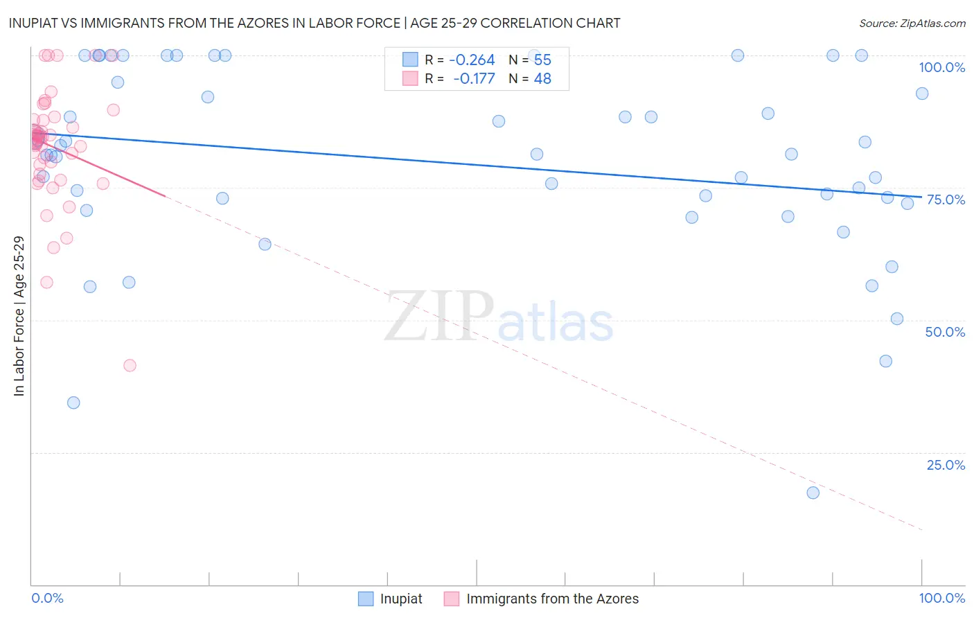 Inupiat vs Immigrants from the Azores In Labor Force | Age 25-29 Correlation Chart