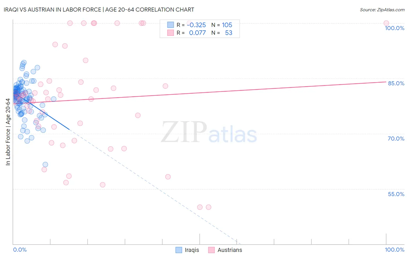 Iraqi vs Austrian In Labor Force | Age 20-64 Correlation Chart